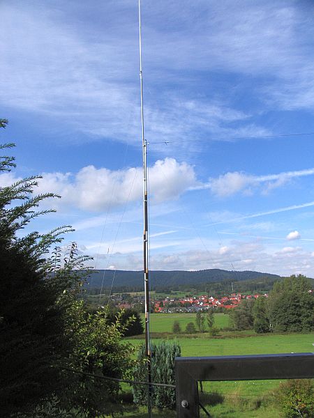 Auf einem abgespannten 10m Mast wurde eine "5/8" für den CB-Packet Betrieb installiert. Eine weitere umgebaute "CB 5/8"