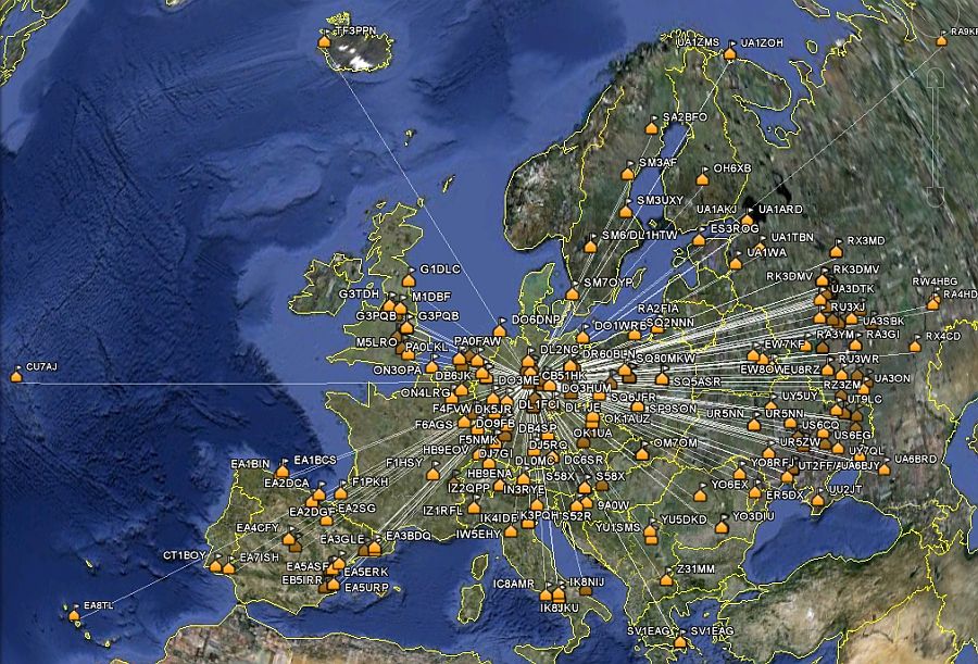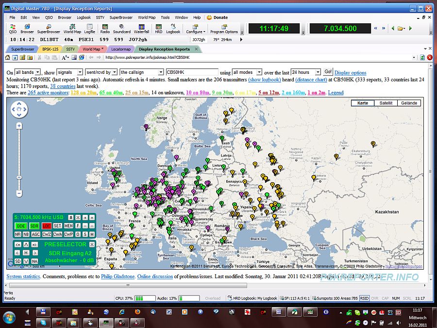 Über den "PSK-Reporter" (im HRD integriert) kann man seine Empfangsergebnisse via Internet Anderen zur Verfügung stellen.