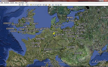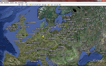 Auch H ACARS Daten lassen sich mit dem Programm PC-HFDL in Google Map darstellen.