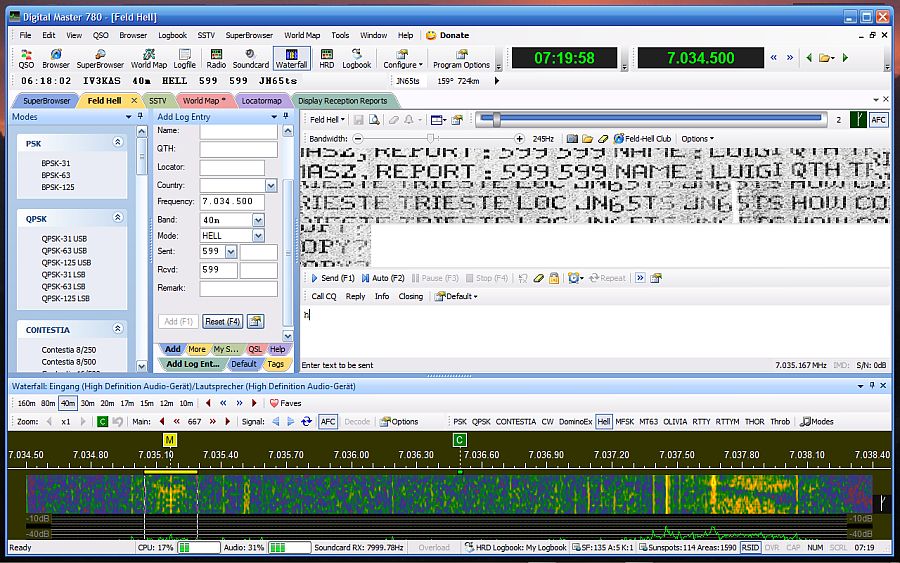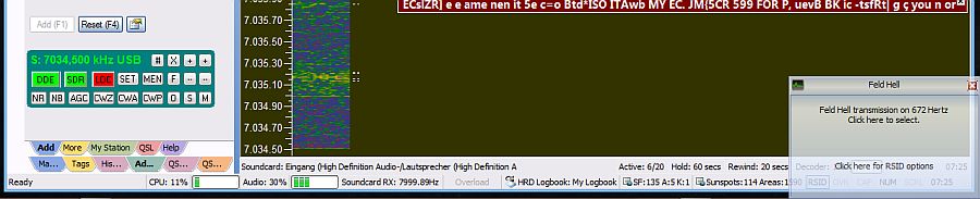 Die tolle "Ham Radio Deluxe" (HRD) Software mit dem integrierten "Digital Master 780" kurz: "DM780" im Einsatz. Fast alle digitalen