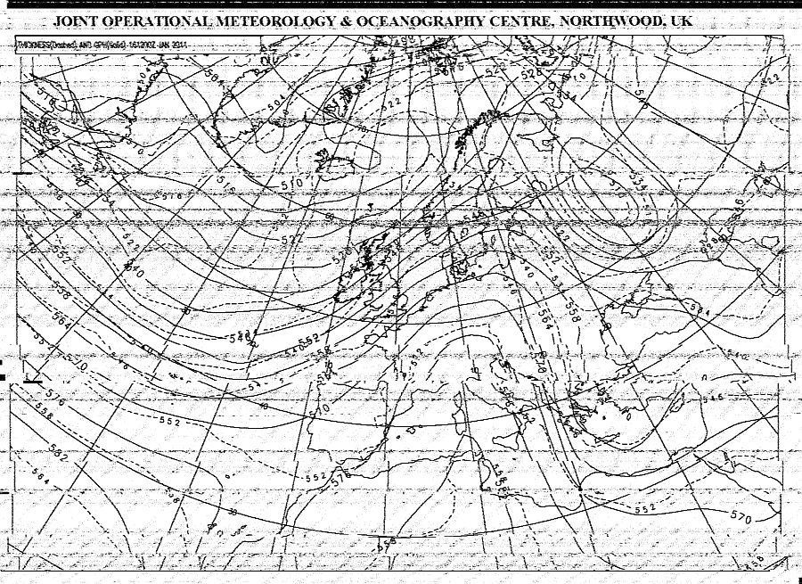 Ein Wetterfaxbild (HFFax IOC 576/120) aus Northwood (England)