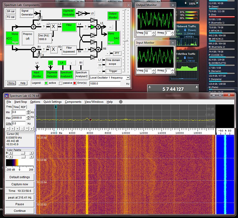 etwas eng wurde. So habe ich das SDR, eine hochwertige externe Soundkarte nebst HDSDR Empfangssoftware auf dem einen Rechner