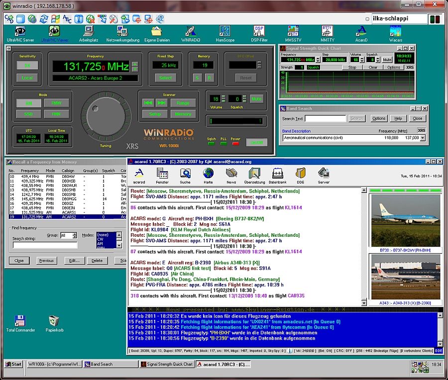 Hier ist der "WR1000i" gerade mit dem Empfang von Flugfunk beschäftigt. Hierbei steht ihm die Software "ACARSD" zur Seite,