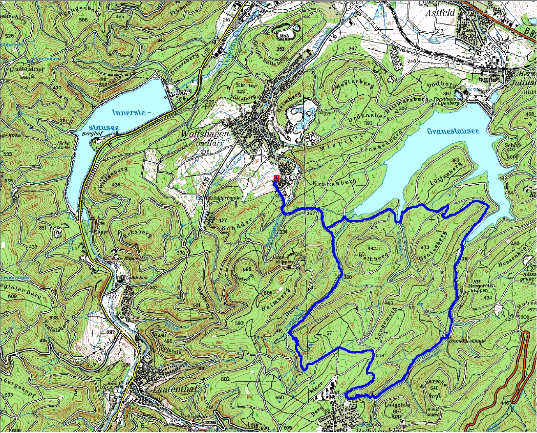 entlang der Granetalsperre zum Forsthaus Lütjenberg