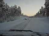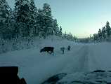 Die erste Elchkuh kreuzt unseren Weg. Danach noch einige Rentiere.