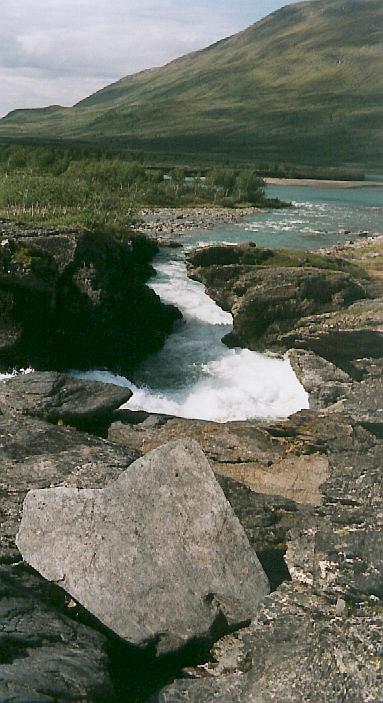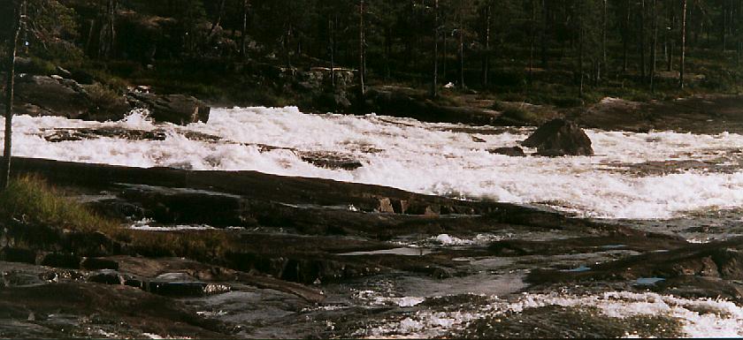 Bohlwege zum Njupskärs – Wasserfall, mit einer Fallhöhe
