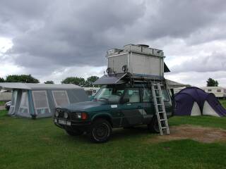 Der erste Tag führt meist nur bis zum Campingplatz Klausdorf auf Fehmarn. Warum nur eine so kurze Strecke? Nun, das ist schnell erklärt: Erstens gibts dort in der Campingplatzgaststätte ein letztes gutes deutsches Bier nebst einer üppigen Schlemmermahlzeit! Und zweitens kann man so früh um 7:00 Uhr am Sonntagmorgen die lästige Autobahnbretterei durch dänisches und südschwedisches Verkehrsgetümmel und die um diese Zeit meist ziemlich leeren Fähren etwas angenehmer und schneller hinter sich bringen. Außerdem ist ein schönes Bad in der "quallenverseuchten" (Ausspruch eines Mitreisenden) Ostsee schließlich auch nicht zu verachten. |