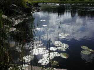 an den rundpolierten Felsblöcken der Uferlinie. Eine handbreit steht der Sonnenball nun
