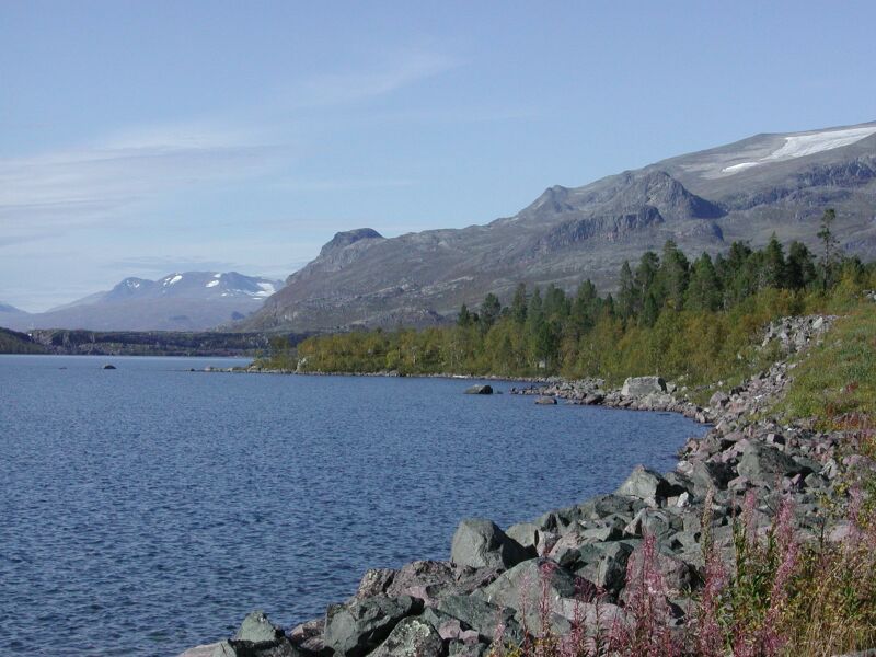 Berge Gletscher und klare Gebirgsseen: Stora Sjöfallet