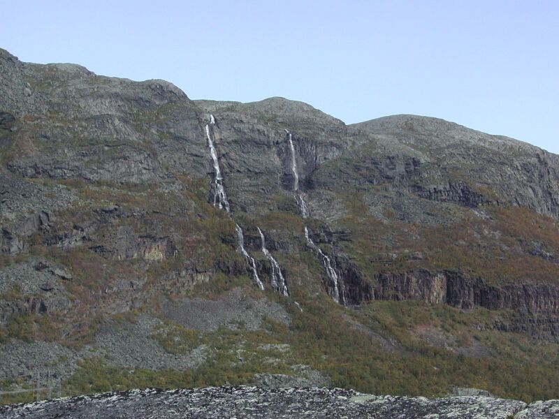 Wasserfälle von 300m Höhe im Nationalpark nördlich des Sarek