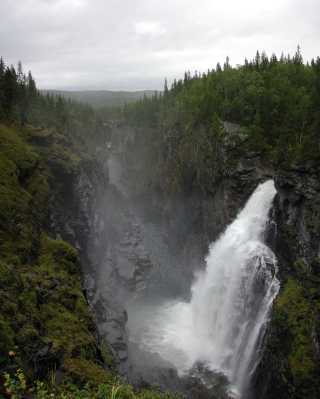 Donnernde Wasser ![]() Hällingsfallet, gewaltig: 20 Tonnen Wasser pro Sekunde donnern in eine 60m tiefe Schlucht. |