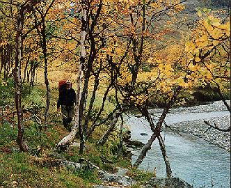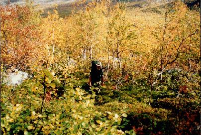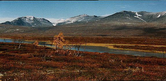 dann zum Klimpfjäll. Die Fahrt geht durch riesige bunte Birkenwälder, die Sonne