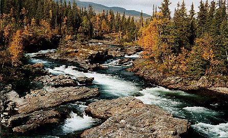 zum Bjurälv ein. Hier lassen wir den Wagen stehen und marschieren hinter in das