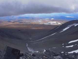 die Berge ins Tal der Lullihavagge. Das Partemassiv vefügt über 11 Gipfel von 1860m bis 2005m Höhe,