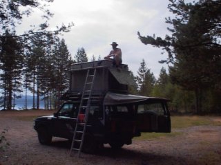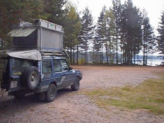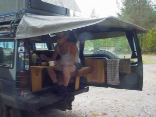 ![]() Der (Nord)Landrover zum nächtlichen Camp komplett aufgebaut und ausgeklappt |