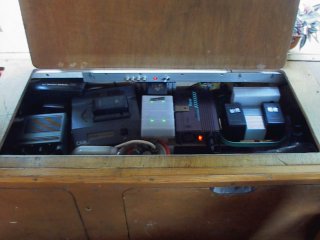 ![]() Die 220V Solarstromversorgung und die diversen Akkuladestationen unter der "Anrichte" |